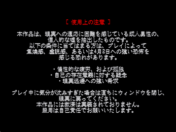 恐怖を目的としたホラーゲームではありませんが、精神的な不安や焦燥感を煽る演出、不気味な表現が含まれます。