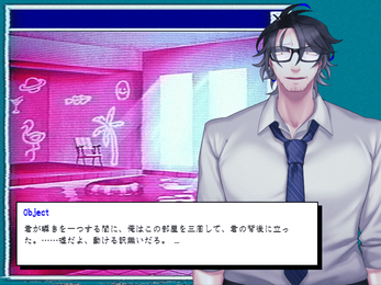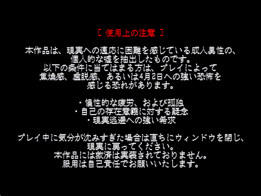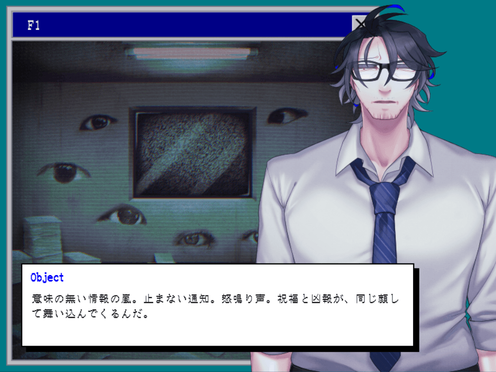 謎の会社員らしき男性NPCとお話をする、少し不穏なADVゲーム。